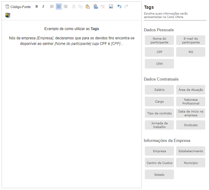 No Editor de Texto, escreva e estilize o template, utilizando as formatações disponíveis no menu.