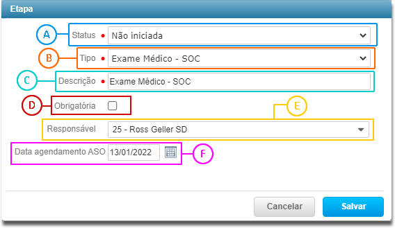 campo Tipo o Tipo de Etapa cadastrado para