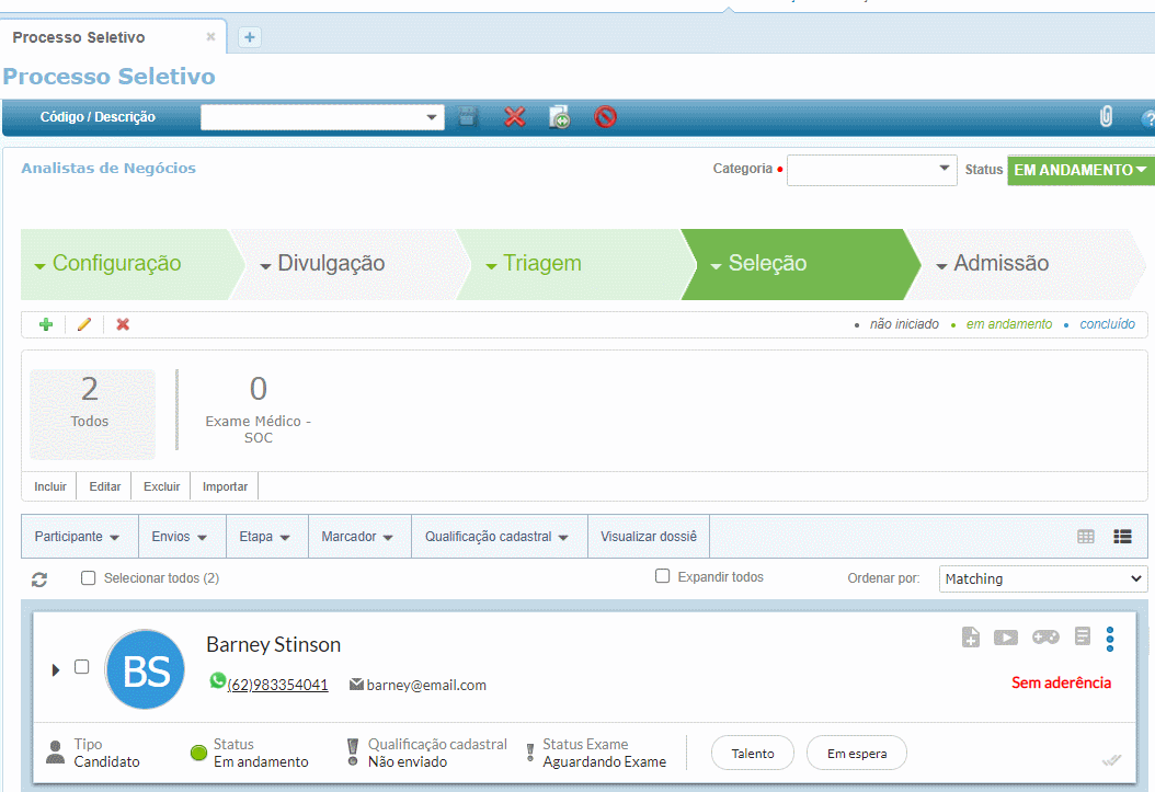Após esses passos você estará apto a utilizar a etapa de exame médico integrado ao SOC e poderá dar continuidade a seleção e aprovação dos candidatos à sua vaga. É importante relembrar que os exames realizados serão carregados para o parceiro SOC de acordo com as parametrizações de Sincronismo feitas no Passo 5.