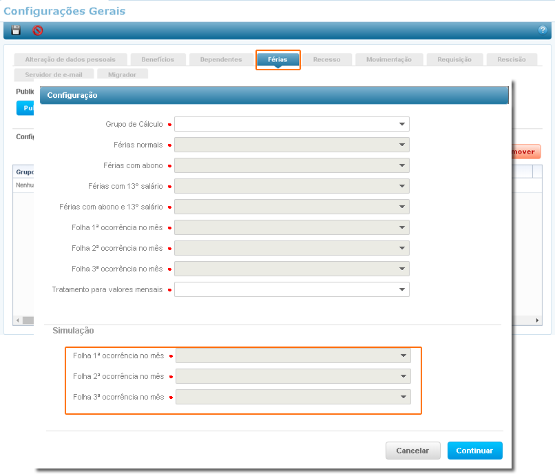 Para a Simulação de Férias as demais configurações permanecem da mesma forma utilizada para Férias.