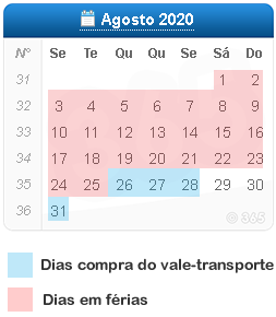 - Após a compra o colaborador entrou de férias em 27/07/2020 com data de retorno dia 26/08/2020![]()