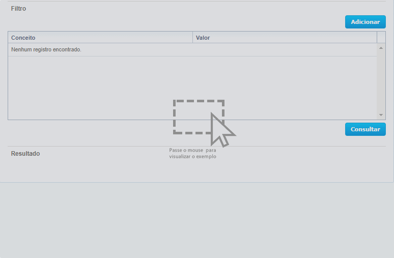 Conceito e o Valor que será utilizado como parâmetro pelo sistema.