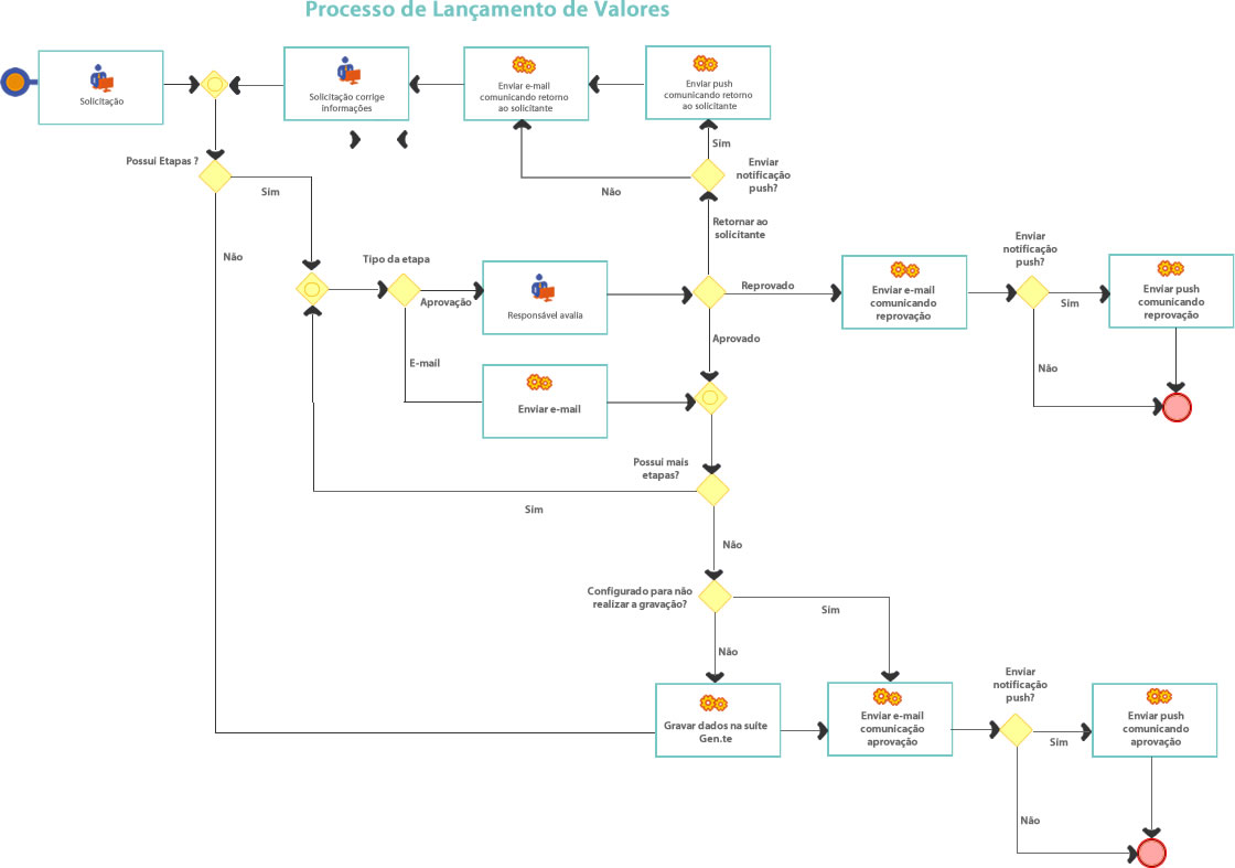Através do fluxo parametrizável de lançamento de valores é possível cadastrar os perfis de lançamento de valores que serão utilizados pelo usuário através do Portal de Autoatendimento.