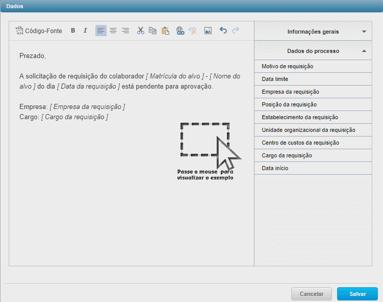 Nesta guia defina como será o envio dos e-mails de Pendência, Aprovação e Reprovação para o processo de requisição.